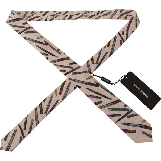 Dolce & Gabbana Off-White 100% Silk Slim Adjustable Accessory Necktie