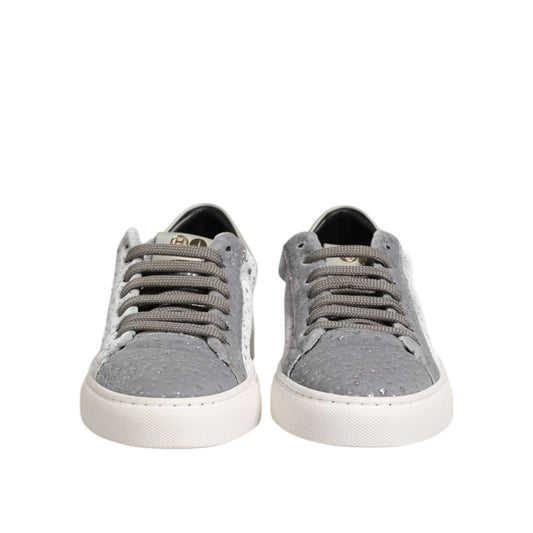 HIDE & JACK Silver Leather Lace Up Low Top Sneakers Shoes