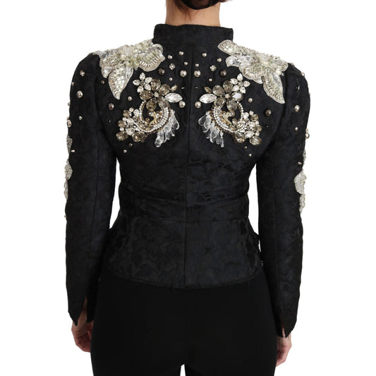 Dolce & Gabbana Black Jacquard Crystal Floral Jacket